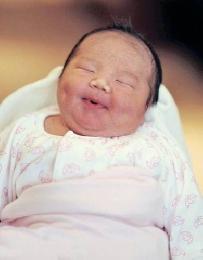 Eloise出世重8.2磅,熟睡中仍展笑容,露出小梨渦,十分可愛。