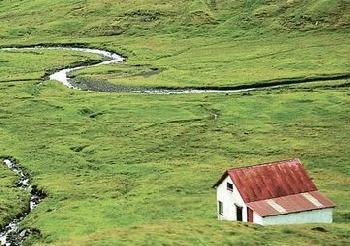 在岩石罅隙之間蜿蜒流過的清溪、草地和小屋,構成絕美的風景畫。(圖:香港明報)