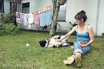 • “把我晾出來的衣服也拍進去哦!”友善的狗主Anna叮囑說。(圖:香港明報)