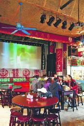 在南莊戲院,客人可以邊吃飯邊看銀幕上的台灣老電影,之後還可瀏覽櫥窗的珍藏舊物。(圖:香港明報)