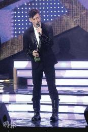 古巨基連莊奪“最受歡迎男歌星”獎,激動地說明年是入行20年會繼續努力。(圖:香港明報)