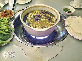 在滇菌王,吃火鍋菌最鮮味的其實是那湯汁,羊肚菌、雞樅菌和黃牛肝菌都屬必吃。(圖﹕香港明報)