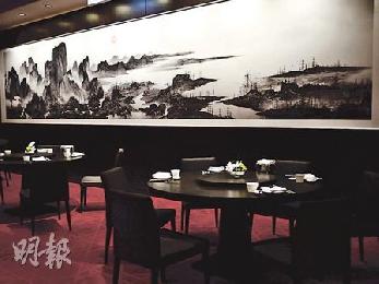 掛於中菜廳寒舍食譜內的楊泳梁“蜃市山水”作品,遠看恍是尋常的山水畫。(圖:香港明報)