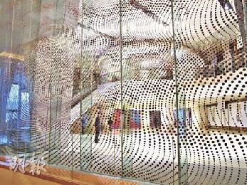 以虎眼石拼貼的壁畫,作為酒店與商場之間若隱若現的邊界。(圖:香港明報)