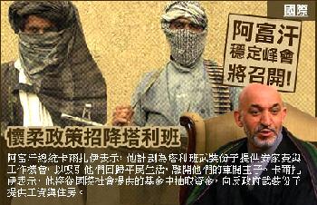 此前,阿富汗總統卡爾扎伊於1月22日表示,他計劃為塔利班武裝份子提供安家費與工作機會,以吸引他們回歸平民生活,離開他們的軍閥主子。卡爾扎伊表示,他將從國際社會提供的基金中抽取資金,向反政府武裝份子提供工資與住房。而對於塔利班的領導人,阿富汗政府則擬准許他們到海外避難。