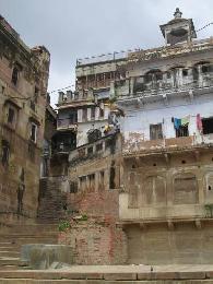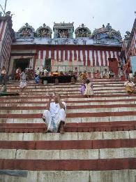 80多個石梯(Ghat)坐落在恆河的西岸邊。廟宇們站在每個石梯的高處,永遠俯望著腳下的恆河;在晴空下,謙虛地對恆河敘說著它們自己的故事;它們的先驅早已屢次粉身碎骨地橫躺在戰火蹂躪下,每次的復興,它們就被披上了嶄新的故事;也只有恆河,聆聽過一代代的故事。