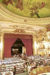 El Ateneo書店前身是歌劇院,現在則擺滿書架,舞台也成了咖啡座。最近舞台的包廂,也成為打書釘的座位。(圖:香港明報)