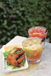 在Milion除了可喝雞尾酒(35披索,約8.50美元),也可以吃到惹味小吃,如炸蝦配火箭菜和芒果汁(29披索,約7美元)。(圖:香港明報)