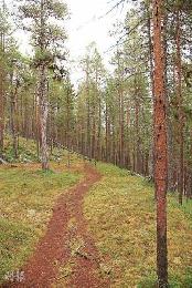 而我們果然如願以償,坐船不過是行程的一部份,下船後,我們漫步進入國家公園。在這裡,我們看到拉普蘭最典型的植物——松樹與地衣,松樹高聳入雲,地衣鋪天蓋地茂盛生長,整個空間幾乎都是綠色。我們踏著地衣而行,像踏著大地毯,腳下綿軟好走。風景依舊秀麗可親,最後走到湖前一小間木屋旁,Aslak三父子生火煮食,煲起鹿肉雜菜湯,桌上放滿麵包飲料、咖啡等。大家二話不說,找個好位置坐下來,吃午餐,享受風景。