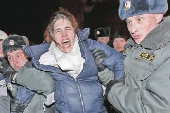 (俄羅斯)俄羅斯數個大城市週日(1月31日)爆發爭取集會權的反政府示威。莫斯科與聖彼得堡300餘名示威者遭防暴警察以集會未獲批准為由驅散,約100人被捕,包括83歲著名異見人士阿列克謝耶娃(Lyudmila Alexeyeva)。(香港明報)