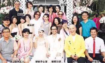 李心潔與彭順的粉紅色婚禮,大部份嘉賓身上也穿了粉紅色配合。(圖:香港明報)