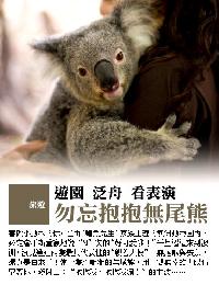 不少從澳洲旅遊回來的朋友,必定擁有一張與無尾熊的合照吧?抱無尾熊,其實比抱一個嬰兒還不簡單,只因此動物個性天生膽小,加上主食尤加利葉子含有安眠成份,導致它們的精神狀態不是在昏睡,就是昏昏欲睡,它們一天的平均睡眠時間需要17至20小時。