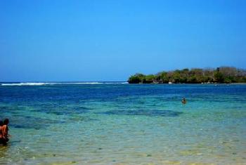 島上熱帶樹木濃綠成蔭,潔白的沙灘在陽光下晶瑩發亮。而她最與眾不同之處,便是那讓人驚歎不已的彩色海水。海裡奇形怪狀的珊瑚礁,色彩斑斕的小魚穿來穿去,魚兒之多,色彩之鮮艷超出你的想像,就連海水也被它們染成了五彩繽紛的顏色,在陽光照耀下,煞是美麗。