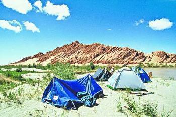 設在和田河邊的“麻扎塔格”營地。在維吾爾語是“墳墓山”的意思。(圖:香港明報)