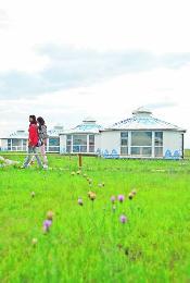 不過對我們來說,不論紅色展廳還是國門,都不及草原吸引。從滿洲里市中心開車不到一小時,便到專為遊客而設的蒙古包營地——其實是蒙古包形的現代水泥房,供遊客留宿或吃飯。要來一次完整的草原體驗,可以騎騎馬射射箭,吃手扒羊肉,聽蒙古國外勞唱正宗草原民歌和呼麥(喉音唱法)。只是隔鄰傳來的卡拉OK聲,猛然提醒你在21世紀的中國。也許當地朋友說得對,這兒的草原風情,要多喝幾杯白酒才深切感受得到。(香港明報)