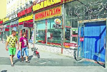 市面的店舖,大都有俄文招牌,招呼俄國遊客。(圖:香港明報)