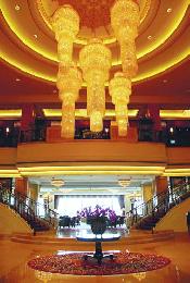酒店大堂水晶吊燈上的層疊式圓頂,參照了蒙古包的特色。(圖:香港明報)