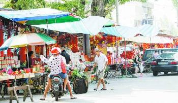 在農曆新年來臨之前,只見老巴剎路邊搭建起一排又一排售賣年貨的攤格,每個攤格都掛上年味濃郁,外觀紅彤彤的燈籠,放眼望去煞是悅目。