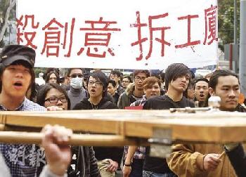 (香港)約300名藝術工作者週六(2月20日)由銅鑼灣出發遊行至藝術發展局(藝發局),抗議政府推出的活化工廈政策變相令工廈租金上升,趕絕文化藝術工作者,要求藝發局發揮其角色,協助他們與政府相關部門磋商。