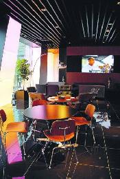 樓上Upstairs餐廳,設剛陽味較重的空間,播放有關駕駛的影片。(圖:香港明報)