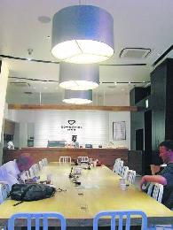 樓下的Downstairs咖啡室,天花燈飾含蓄表達其“平治血統”。(圖:香港明報)