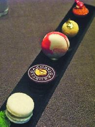 Bulgari自家製的巧克力相當矜貴,印有商標的松茸巧克力(左一)便要1500日圓(約20美元)一顆。(圖:香港明報)