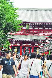 東京巿面運作正常,著名景點淺草寺亦已有不少遊客。(圖:香港明報)