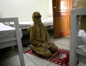 2010年1月13日,Zafar Iqbal在伊斯蘭堡的硫酸幸存者基金會的男子病房做中午禱告。