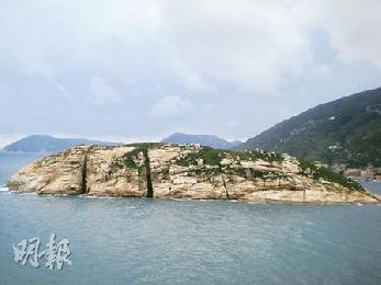 • 五分洲有4條明顯的罅隙,小島像被分開成5份一樣。(圖:香港明報)