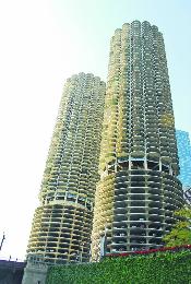 • 1960年代落成、有“玉米”之稱的Marina City,在《蝙蝠俠﹕黑夜之神》和The Hunter等電影中都有出現。(圖:香港明報)