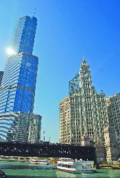 • 近百年前開幕的Wrigley Building(右),絕對能媲美落成三年、全芝加哥兼全美第二高的Trump Tower Chicago(左)。(圖:香港明報)