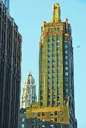 • Carbide & Carbon Building的墨綠陶磚外牆和金色的頂部,形態有點像香檳。(圖:香港明報)