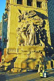 • Michigan Avenue Bridge的橋躉上,刻着美麗的浮雕。(圖:香港明報)