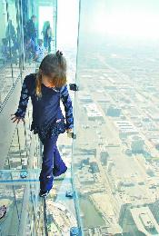 • 103層高、向外突出4.3呎的The Ledge,是兩年前才於Willis Tower開放的景點。(圖:香港明報)