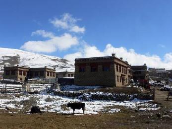 雪白色彩畫了理塘。昨天晚上,這個城鎮下了一場雪。天依然灰灰,在重重烏雲下沒有一絲明亮;下車時,一股急流的寒氣攻襲而來,這個海拔4100多米的高原小鎮,抹殺了所有暖意,一點都不剩。
