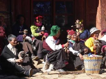 喇嘛廟裡擠著密密麻麻穿著五顏六色藏服的藏民。他們自手裡都拿著自製的奇型怪異的轉經筒,轉呀轉,世世代代都在廟裡轉了好幾百年。