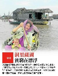 屋身就係著幾個舊輪胎,交通工具是小舢板。小小船身棲一家,湖面上會看到母親帶著二三個孩子,在搖晃窄小的舢板裡,在酷熱的日曬下,黝黑粗糙的皮膚眼神呆滯的在等待。
