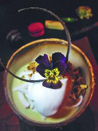 Jahn的椰子Crème Brûlée配椰子雪糕(450泰銖),採用蘇梅特產椰子製成。(圖:香港明報)