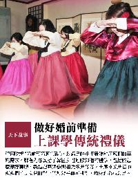 30歲的李侑真(Lee Yu-jin,譯音)將於今年12月嫁為人妻,她表示課程讓她發現結婚得做的事情還真不少。她說:“我學習到一個新婚人妻該懂的所有韓國傳統知識,包括該怎麼穿好韓服和參與祖先祭典。我覺得自己現在已經做好結婚的準備了。”