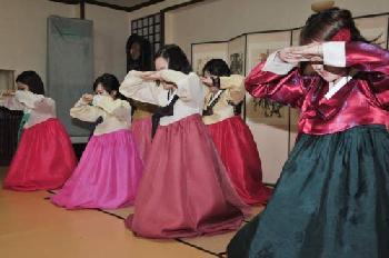 導師見其中一名學生似乎有點手忙腳亂,即說道:“我們穿著韓服時不應走得太快。如果裙子發出摩擦聲,就表示你走路的方式不對。裙擺應該不會移動才是。”