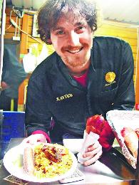 • 除了德國肉腸,還可以在市集買到西班牙炒飯便當(1050日元)及巨型火雞腿(980日圓)。(圖:香港明報)