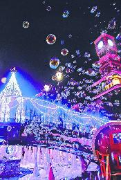 • 晚上7時,園內鐵橋底都會噴出漫天肥皂泡,非常夢幻。(圖:香港明報)