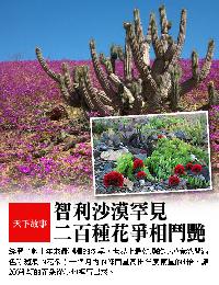 (智利)經歷了數十年來最潮濕的冬季,世界上最乾旱的沙漠竟然遍地開滿鮮花!一個月內的降雨量,超過一年總雨量的4倍,讓這裡200餘種花從沙地裡迸出綻放。
