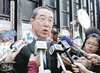 香港特首參選人唐英年1月28日會見資訊科技界選委後見記者,批評梁振英擔任行政會議召集人期間,一直沒提扶貧建議,卻在選舉前“一次過講”,質疑梁的用意何在。(圖:香港明報)