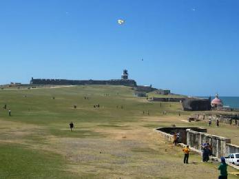 白天聖胡安古城最多遊客出沒的地方,除了這幾條老街外,就是依海而立的古堡。聖胡安古城及它的古堡在已被列為聯合國世界文化遺產。島上三座歷史悠久的古堡包括從1540年開始建立的El Morro Fort、1613年於島北岸沿著海岸線建立的San Christobal Fort,以及到南側的La Fortaleza。古堡佔地極廣,參觀前,最好換上一雙舒適的鞋子,還有為自己騰出最少半天時間。而對當地人來說,古堡並不只是嚴肅的歷史古物或旅遊景點,它是一處生活場景,是休閒的好去處。每逢假日,許多家長最愛帶小孩到古堡外的草地上放風箏,曬太陽。