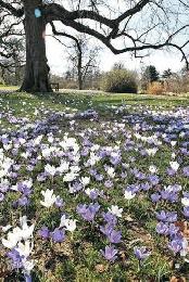 到訪裘園,一進門便看到鋪滿地上的紫色白色番紅花了。番紅花在許多英國人心中,代表春天,番紅花開花了,正是春天已經到臨的記號。由於去年英國的冬天太寒冷,連春天也來遲了,今年的花期因此大約落後了三週。本來應該是鮮明的黃水仙全面登場的時候,番紅花卻仍然昂首漂亮,而脫俗可愛的snowdrops還零星出現,有部份黃水仙也率先綻放,預計再過一會兒,裘園將擁有一片黃金海。