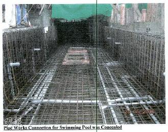 此外,《蘋果日報》2月14日刊登一張聲稱由讀者提供的照片,聲稱是2006年5月唐宅約道7號地盤的施工圖片,顯示泳池佈滿鋼筋外,後方清楚顯示有兩個大洞,跟目前7號屋泳池的兩個玻璃洞相似。