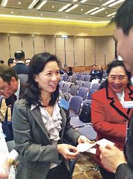 香港總商會總裁袁莎妮(圖)2月21日出席廠商會活動時稱,不認識唐的新緋聞女主角林穎妍。(圖:香港明報)