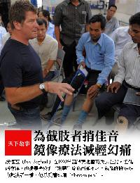 來自加拿大的短期培訓師桑納(Stephen Sumner),指示波速匹挪動右腿腳趾,目光則要投在鏡子上,讓他好像看到了所失去的左腿。