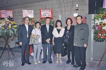特首候選人何俊仁(左2)、唐英年(右2)和梁振英(右1),正為3月16日的電視辯論準備。何俊仁競選辦副團長李永達說,計劃和團長張文光“墊高幾級”,模擬何與唐梁辯論的情況。圖為唐梁何三人上週同場出席環保論壇。(資料圖片)(圖:香港明報)
